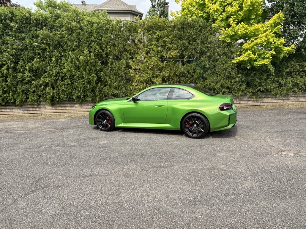 Difficile de la trouver joli avec son style tarabiscoté. Sa silhouette est boursouflée, ses prises d’air presque vulgaire, et ses lignes semblent dictées par un designer en crise identitaire. Le seul élément vraiment séduisant de notre exemplaire d’essai : la peinture verte métallisée… et facturée 5 000 $. À ce prix-là, on achète le look autant que l’originalité. Donc, malgré un format plus généreux, la M2 perd au change. Elle est moins élégante et plus étriqué. Les places arrière demeurent symboliques et les cotes intérieures sont quasi inchangées, voire régressives en hauteur et son poids est aussi en hausse.