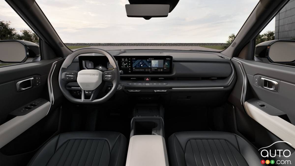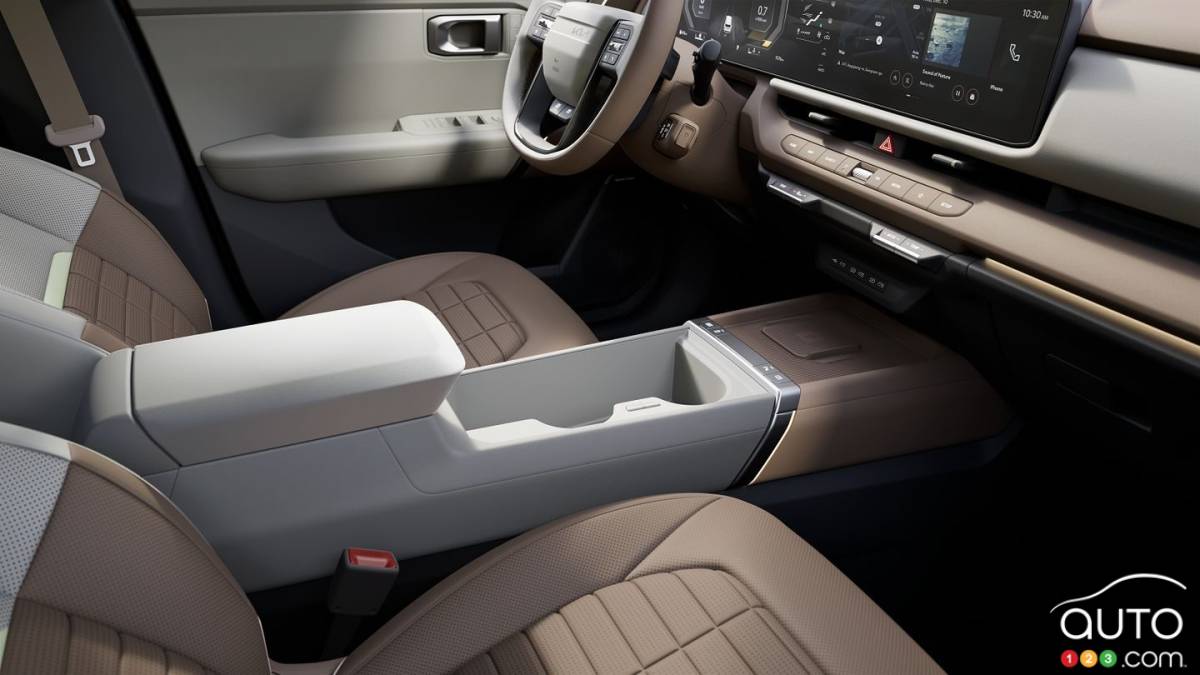 Selon Kia, l’espace intérieur progresse, bien que les cotes nord-américaines ne soient pas finalisées. Les sièges arrière peuvent s’incliner jusqu’à 12 degrés, le siège conducteur offre un mode « relaxation » et un toit ouvrant panoramique sera proposé. Des chaînes audio Harman Kardon ou Bose figurent également sur la liste.