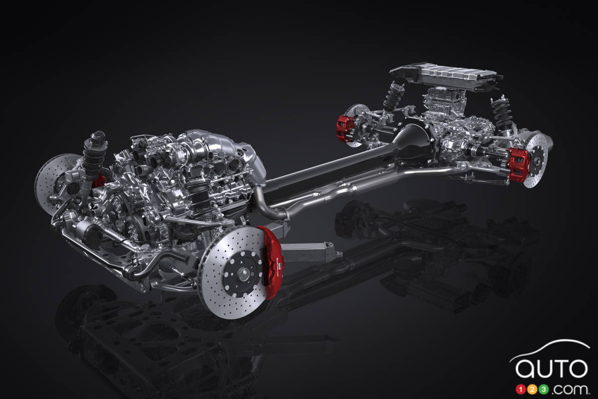 Sous le capot, un V8 biturbo 4,0 litres à carter sec entièrement nouveau est jumelé à une boîte-pont arrière avec transmission automatique à 8 rapports. On retrouve également un moteur électrique unique intégré et un différentiel mécanique à glissement limité avec tube de torsion en fibre de carbone. L’objectif est d’offrir une voiture performante, mais toujours maîtrisable, peu importe le niveau du conducteur.