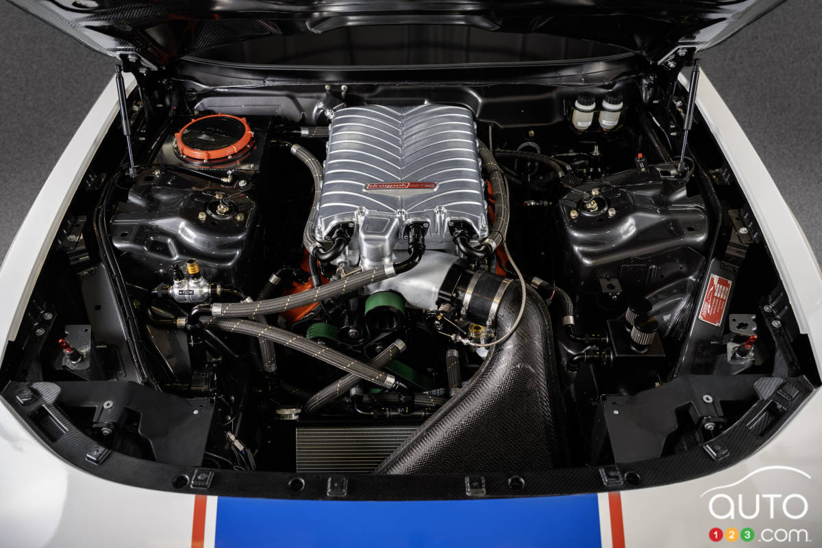 Ajoutons que la Charger Hustle Stuff Drag Pak est la première voiture de course produite sous la bannière SRT depuis que cette dernière a été relancée par Stellantis. Cette Charger, dont le but est de parcourir le quart de mille en un temps record, sera préparée par Riley Technologies. Cette entreprise basée à Mooresville (Caroline du Nord) n’en est pas à sa première collaboration avec SRT.