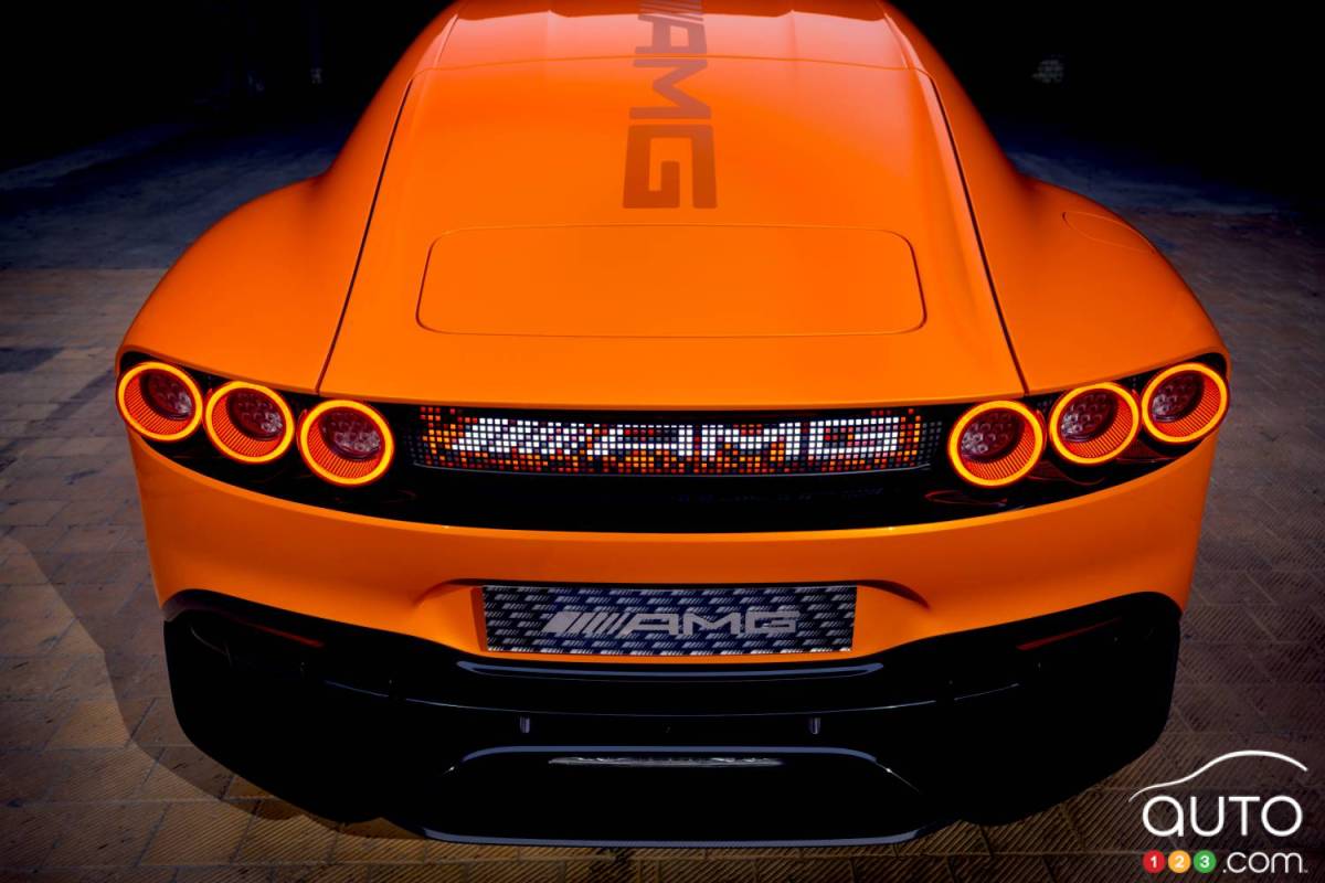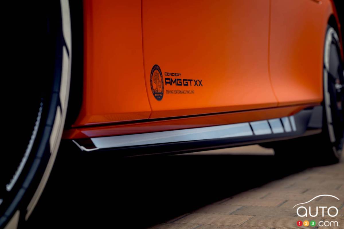 Mercedes a aussi confirmé que le concept GT XX se laissera entendre, malgré son cœur électrique. Des haut-parleurs intégrés dans les phares simuleront des sons de conduite et serviront aussi pour livrer des alertes piétonnières. À défaut d’un échappement à l’arrière, c’est l’avant de l’auto qui grognera.