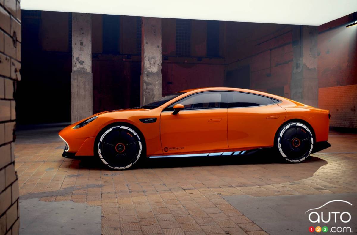 Mercedes-AMG lève le voile sur le concept GT XX, un prototype de berline électrique conçu pour annoncer la prochaine ère du constructeur allemand en matière de performance zéro émission. Basé sur la nouvelle plateforme AMG.EA, ce monstre développe 1341 chevaux, est capable d’atteindre 359 km/h, et propose une foule d’innovations techniques, y compris des roues à aéroactive, une batterie NCMA refroidie directement, et même des haut-parleurs extérieurs intégrés aux phares. Rien de moins.