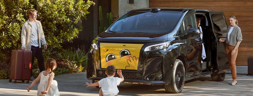 Cet écran transforme donc l’avant du véhicule en panneau d’affichage. Selon le constructeur, cet écran fonctionne de manière interactive avec les occupants de la fourgonnette grâce à un système de reconnaissance vocale, à des indices visuels et même à une communication réactive, mais uniquement lorsque la fourgonnette est à l’arrêt. Il devient un avatar du conducteur et de ses passagers.