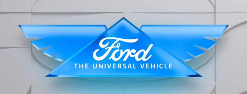 Ford réactualise aujourd’hui ce logo avec la mention « The Universal Vehicle ». Cela symbolise une approche similaire : une base technique unique qui pourra accueillir plusieurs types de véhicules électriques, avec un coût de production réduit et une grande adaptabilité.