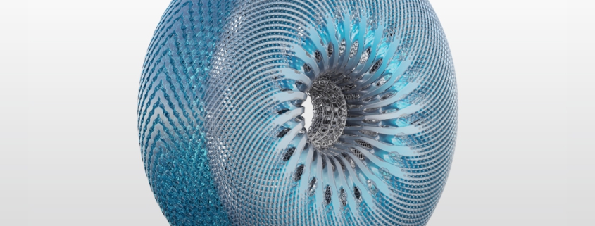 Le premier de ces deux concepts futuristes démontre ce que pourrait être un pneumatique durable. Appelé Sustainable Concept Tire (SCT), il est fabriqué couche par couche par impression 3D avec des matières premières recyclées et renouvelables. De plus, ses sculptures adoptent un design organique dont les formes se basent sur des principes naturels d’efficacité, explique le fabricant.