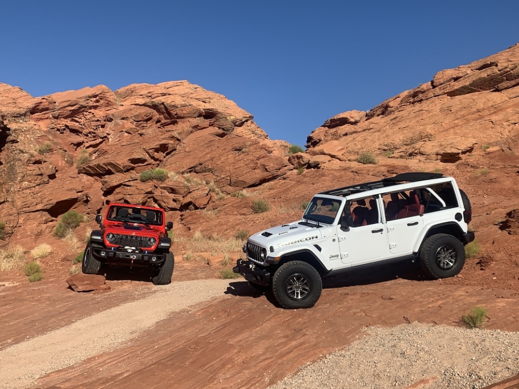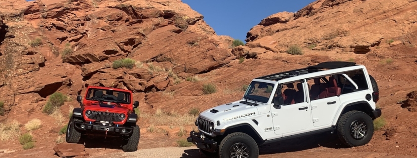 Jeep souhaite également faire mieux dans les domaines où elle excelle. Par exemple, le modèle Rubicon remplace son essieu arrière Dana 44 semi-flottant par un nouvel essieu arrière solide Dana 44 ultra-robuste et entièrement flottant. Ce nouvel essieu permet de monter des roues et des pneus plus larges, ce qui augmente la capacité de remorquage. Les essieux entièrement flottants sont généralement utilisés sur les camions commerciaux de gros tonnage ; leur conception transfère le poids du véhicule sur le tube d’essieu plutôt que sur l’arbre d’essieu, ce qui augmente la capacité de remorquage jusqu’à 5 000 livres sur les modèles Rubicon 2.0 litres et 3.6 litres équipés de la boîte de vitesses automatique à huit rapports. Les rideaux gonflables latéraux sont désormais de série et 10 nouveaux modèles de jantes de 17 à 20 pouces sont proposés. Les dimensions des pneus pour la gamme 2024 vont de 32 à 35 pouces. La Willys modernisée est désormais équipée de pneus BF Goodrick TKO de 33 pouces, d’une garde au sol accrue et d’un coffre arrière de série.