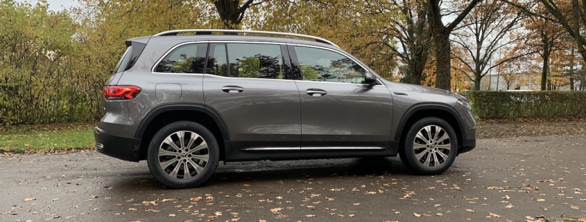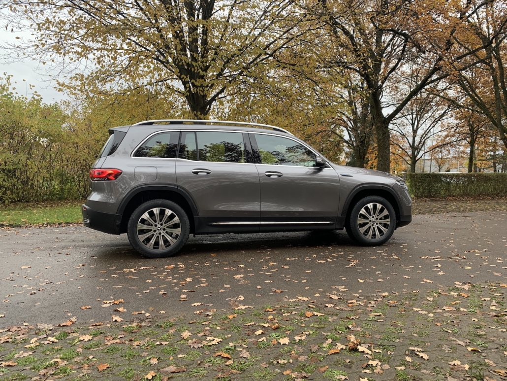 Pour un néophyte, il sera difficile de faire la différence entre le GLB et L’EQB. Les deux repose sur la même plateforme. En regardant de plus près, vous allez voir que Mercedes a poussé les roues aux quatre coins pour étirer un peu la longueur totale dans le modèle EQB. Le pare-brise offre moins de résistance aux vents pour maximiser l’autonomie et vous avez un soubassement lisse en aluminium pour les mêmes raisons. La calandre du modèle à essence a été remplacée par un panneau lisse avec une barre lumineuse qui s’étend sur le nez et à l’arrière comme les modèles électriques de la famille. On distingue aussi des jantes propres aux modèles EQB