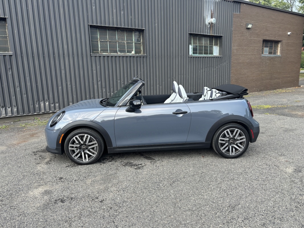 La MINI décapotable reste l’un des cabriolets les plus mignons sur le marché, sans tomber dans la caricature. Elle conserve des proportions compactes (moins de 3,9 mètres), des porte-à-faux courts et une capote bien intégrée, qui ne dénature pas la ligne une fois rabattue. Le coffre, lui, est toujours modeste, mais assez fonctionnel pour un week-end à deux. Même si le confort demeure ferme, l’habitacle reste bien isolé pour un cabriolet. Les sièges sport maintiennent bien et l’espace aux places avant est généreux. Les systèmes d’aide à la conduite sont bien présents : détection d’angles morts, alerte de collision, assistance au maintien de voie. MINI n’a pas encore été évaluée par l’IIHS ou la NHTSA pour 2025, mais son équipement technologique rassure.