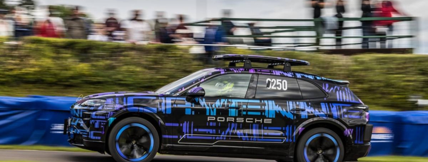 Pour l’occasion, Porsche a fait voyager le prototype de son Cayenne électrique pour participer à cet événement historique, avec au volant Gabriela Jílková, qui est pilote de développement de Porsche en Formule E.