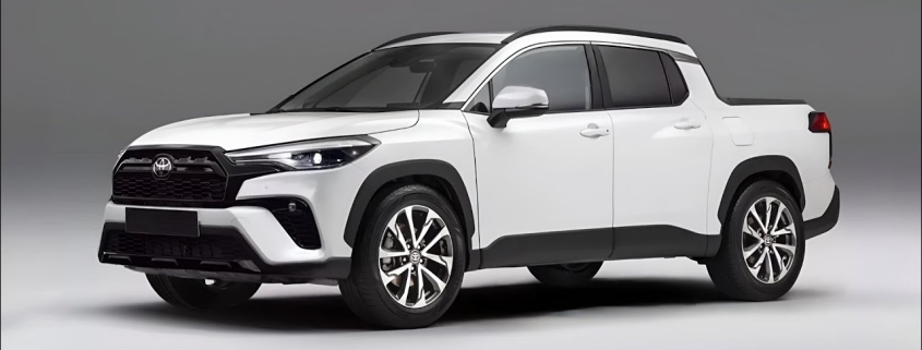 La photo que vous voyez ne vient pas de Toyota, mais est un rendu numérique non officielle. Le dessin se base sur un châssis de Corolla Cross transformée en petit pick-up dans le style du Maverick chez Ford.