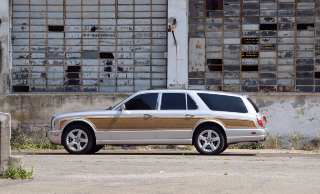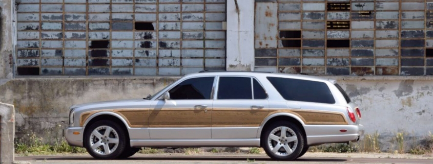 Cette Bentley Arnage 2002 a été construite à l’origine en Angleterre pour l’héritier d’une fortune industrielle italienne, qui avait demandé à ce que sa voiture soit aussi polyvalente que possible. Elle a été envoyée aux États-Unis pour sa première série de modifications majeures par Genaddi Design. Ils ont transformé la berline en familiale et adapté la transmission automatique Bentley pour qu’elle accepte le système de transmission intégrale d’un Cadillac Escalade. Ils ont ensuite ajouté un toit ouvrant panoramique Webasto.