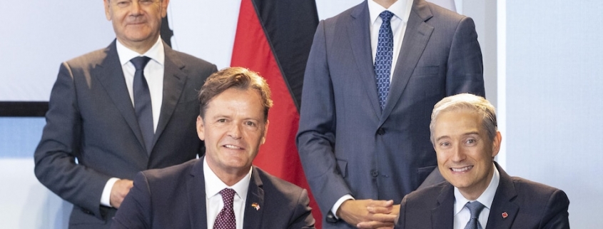 Il fallait quand même s’y attendre, quand une délégation allemande tout entière visite ton pays, il va sans doute y avoir quelques représentants de l’industrie automobile dans le lot. Et la semaine dernière, alors que le chancelier allemand Olaf Scholz est venu serrer la pince à Justin Trudeau et qu’il a beaucoup, beaucoup parlé de gaz naturel et d’hydrogène, eh bien des fonctionnaires canadiens ont rencontré des représentants de Volkswagen et de Mercedes-Benz pour conclure des accords d’approvisionnement qui leur permettront d’avoir accès aux ressources minières canadiennes pour fabriquer les batteries de leurs futurs véhicules électriques.