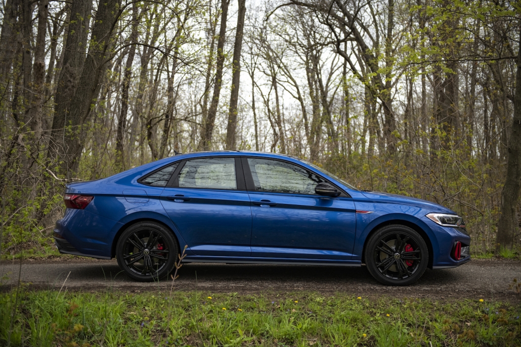 Vous avez toujours le choix entre un modèle d’entrée de gamme et une version GLI. Volkswagen a décidé d’harmoniser les mécaniques. On se demandait pourquoi la marque conservait un moteur 1,4 litre dans les Jetta et Golf et installait une mécanique 1,5 litre dans le Taos. Pour 2022, le 1,5 litre du Taos est maintenant dans la Jetta de base. Il développe 158 chevaux et 184 lb-pi de couple et vient au choix avec une boîte manuelle à six rapports ou à 8 vitesses automatique. Volks a aussi profité de l’occasion pour installer une nouvelle calandre, des pare-chocs redessinés, de nouveaux feux à DEL et des feux arrière pour tout changement extérieur. À l’intérieur, VW offre à toutes les Jetta le groupe de jauges entièrement numériques que l’on trouvait auparavant sur les niveaux de finition supérieurs, un nouveau volant et des boutons haptiques pour le système d’infodivertissement. De son côté la GLI, contrairement à la GTi conserve quelques vieux morceaux de l’ancien modèle dans l’habitacle, ce qui a plus à votre auteur. On se sent moins dépaysé que dans le GTi.